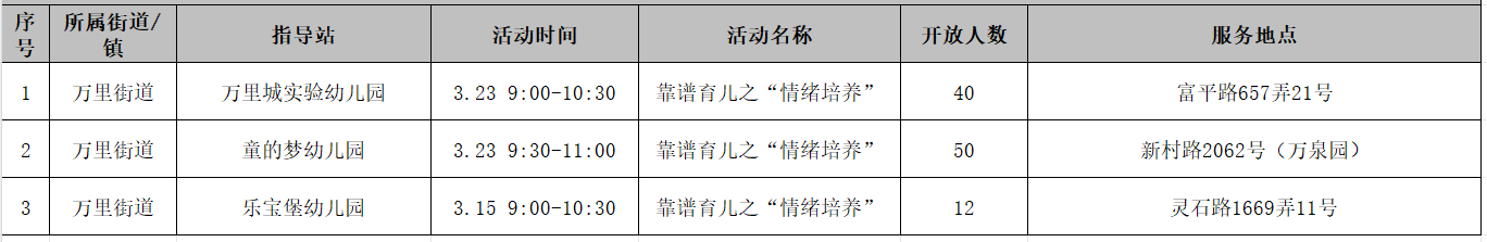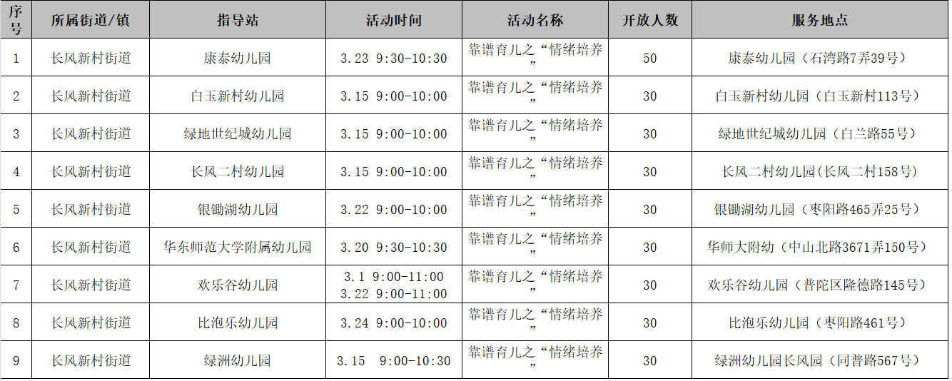 2025年3月起,普陀区科学育儿指导站将以“科学育儿——情绪培养”为主题,在全区10个街镇的公(民)办幼儿园内开展亲子游戏活动,面向辖区内3岁以下婴幼儿家庭提供线下科学育儿指导免费公益服务。