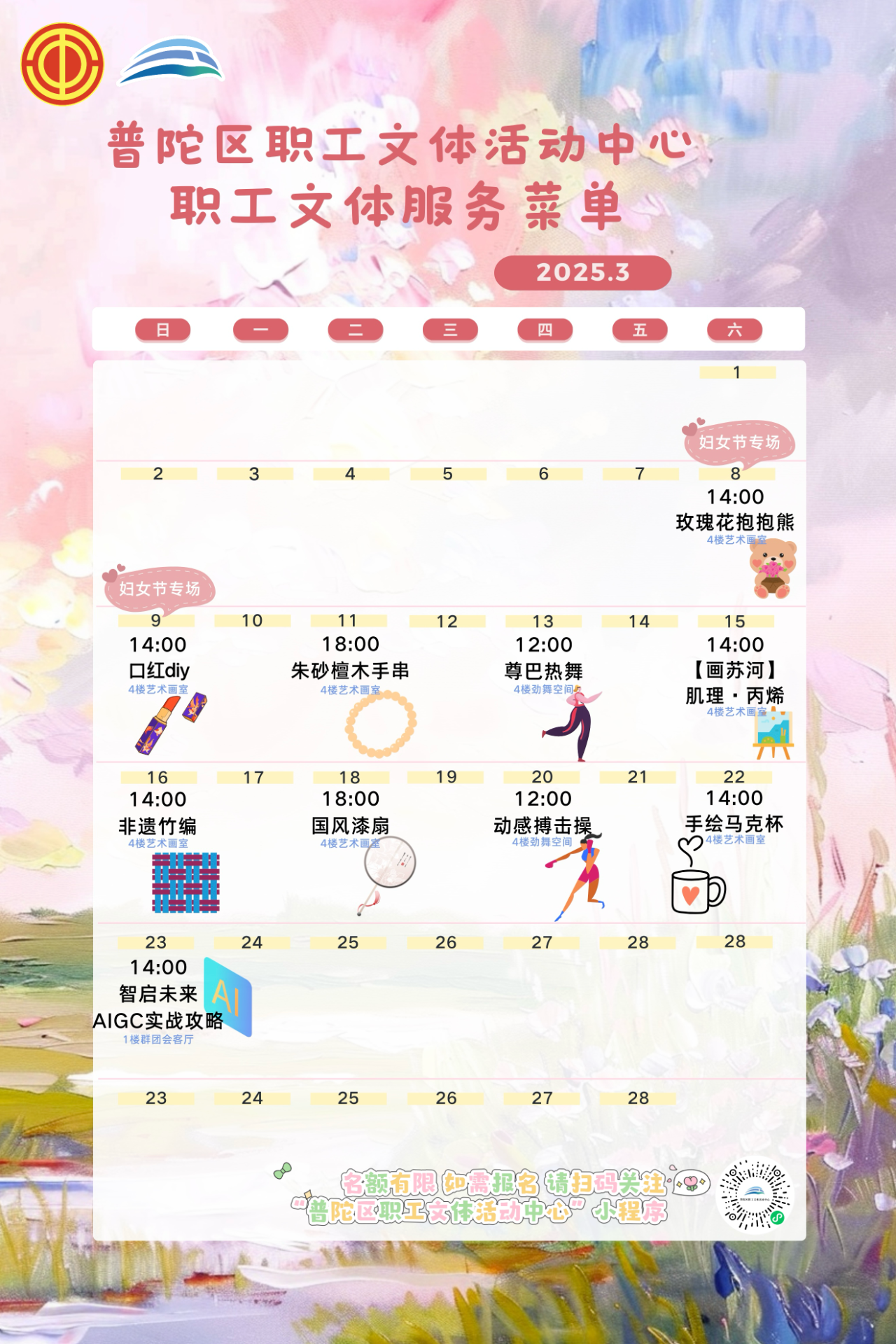 重要提示!本菜单所有现场活动将于2月28日(周五)中午12:00在“普陀区职工文体活动中心”小程序准时开放报名!