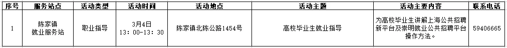 活动简介:为高校毕业生、长期失业青年及其他有求职需求的人员提供岗位信息、求职登记、政策咨询等就业服务。
