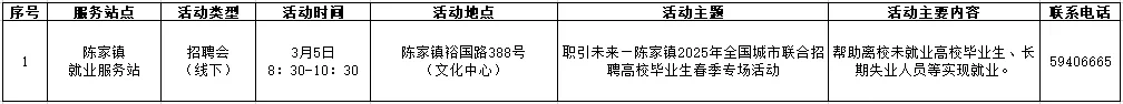 活动内容:“春风送岗促就业,精准服务助发展”2025年春季促进就业专项行佘山镇专场招聘会(外场招聘会、内场就业指导讲座)