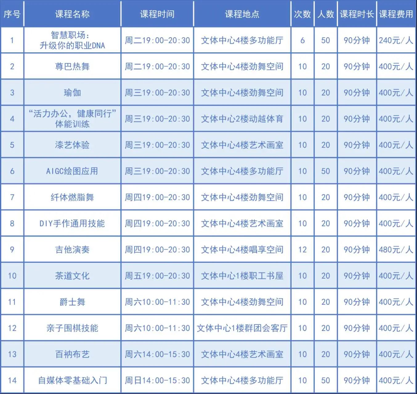 在“群星夜校”里,不管是学习AI应用技能,用科技赋能职场;还是尽情挥洒汗水,释放身体的活力;抑或是提升动手能力,激发创造力与想象力;各类系列课程应有尽有,单价仅需40元!公益价格点亮职场星光!