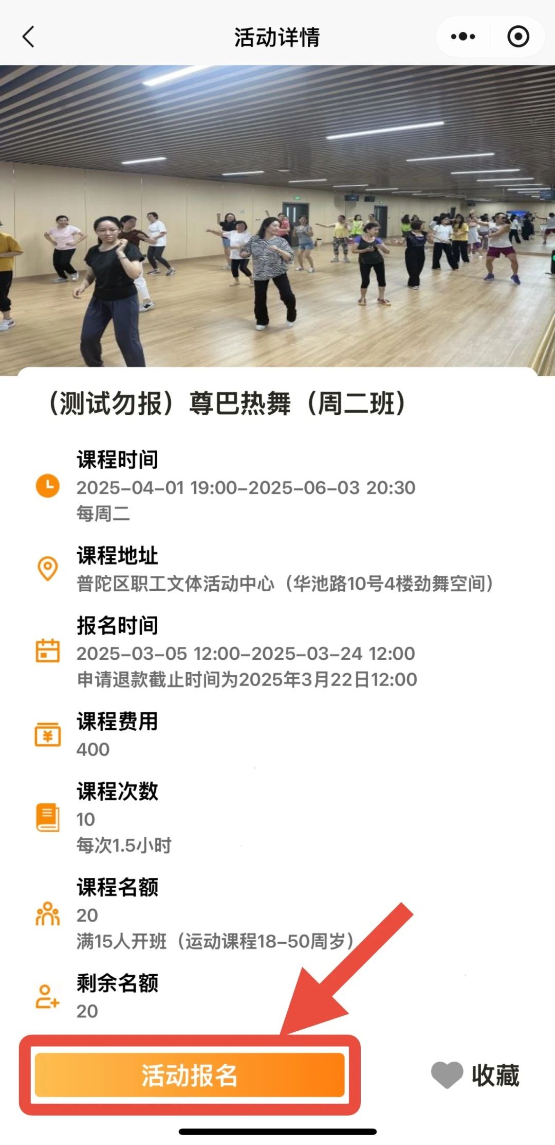 扫描下方二维码或微信搜索“普陀区职工文体活动中心”小程序,并按需选择课程,报名流程详见下文。