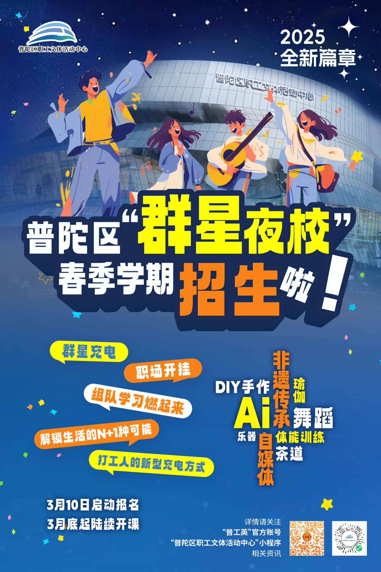 你想解锁生活的N+1种可能吗?你想探寻打工人的新型充电方式吗?快来普陀区“群星夜校”组队学习燃起来!