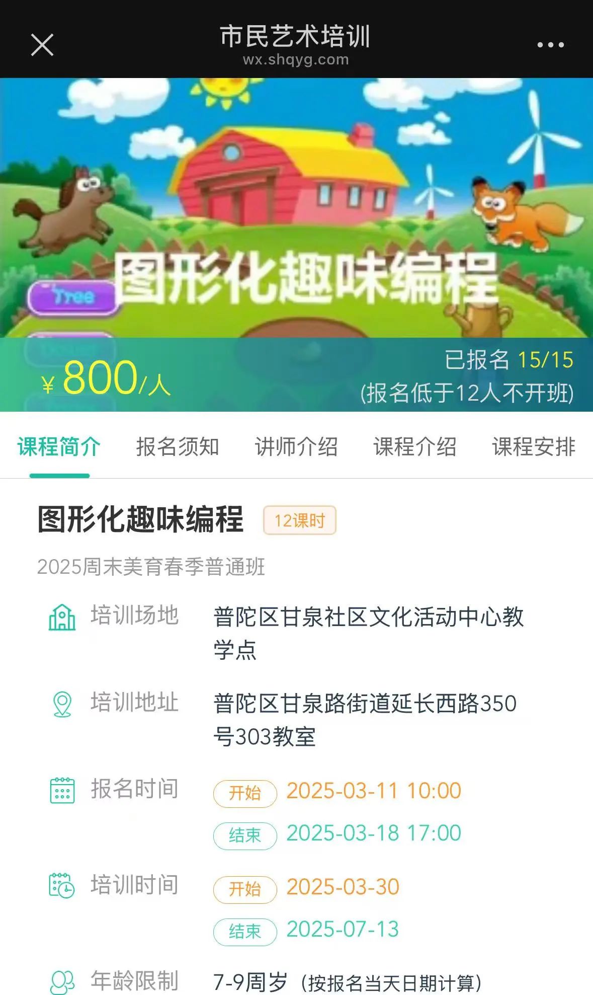3月11日上午10时,2025年普陀区周末美育课堂春季班招生正式拉开帷幕,短短几分钟内,甘泉社区文化活动中心的图形化趣味编程课及少儿声乐启蒙课、宜川社区文化活动中心的体适能教学课便被一抢而空,课程受欢迎程度在各区分校中名列前茅。图形化趣味编程课虽然已开设多次,依然深受小学员喜爱,继续成为普陀区最快被抢完的课程。此外,少儿创意童趣美术课、Python趣味编程课也已陆续满额,硬笔基础课等仅剩少量名额。