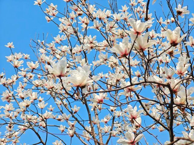 目前,徐家汇公园、东湖绿地、漕溪路地铁站附近的白玉兰已经陆续进入盛花期,花期预计十天左右。
