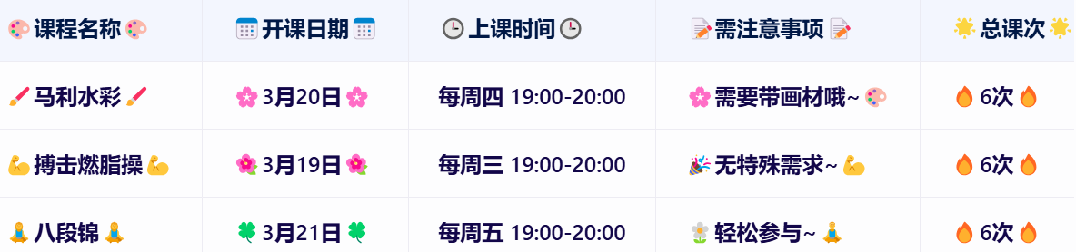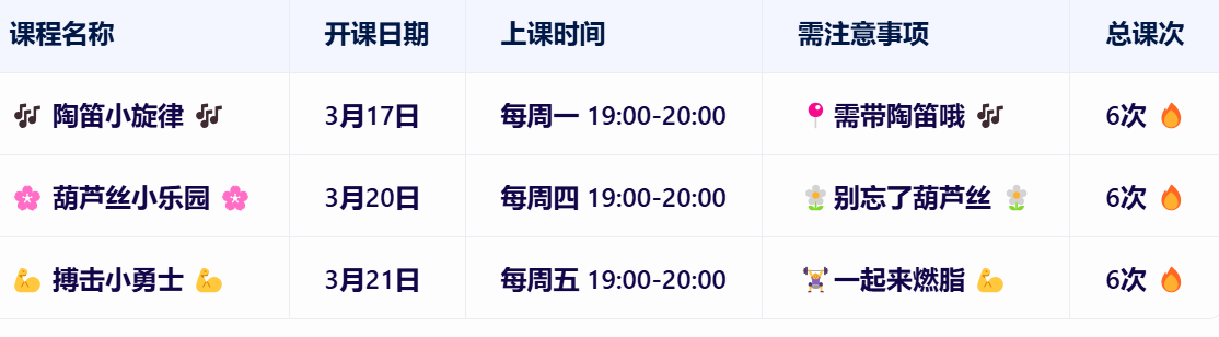 5.报名成功的学员请准时参加活动,如有事不能前来,务必提前2天于班级群内请假。如无故缺席2次,将取消后续活动的报名资格。
