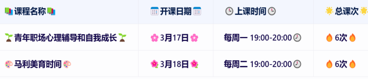 1.本期青年夜校课程面向青年小伙伴,3月20日18:00报名截止。