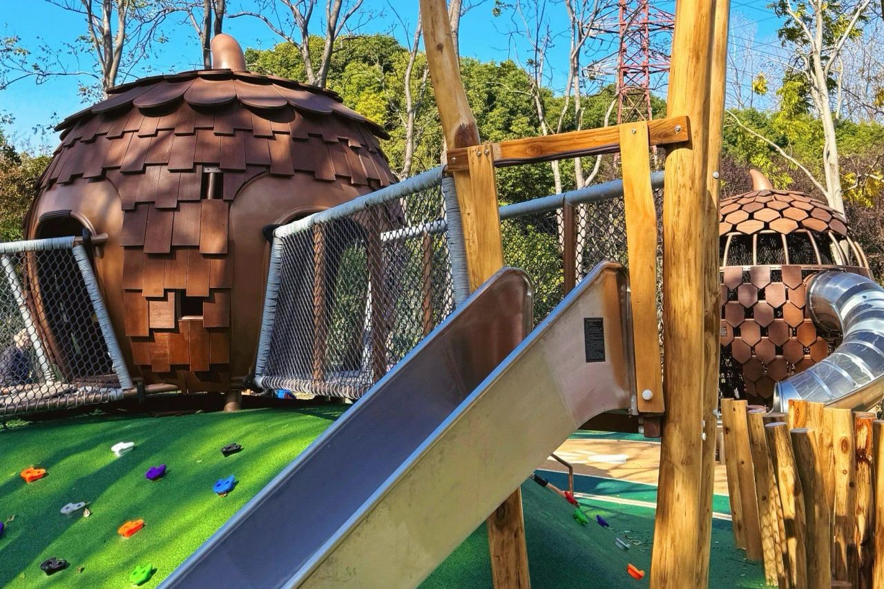位于公园内的“松果乐园”近期成为亲子游玩的热门打卡地。这座以松果为设计灵感的儿童乐园,巧妙地将自然元素融入游乐设施之中。乐园布局紧凑而不失趣味,就连地面都精心绘制了跳房子游戏图案,让每一寸空间都充满童趣。