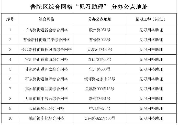 普陀区综合网格“见习助理”招募开启
