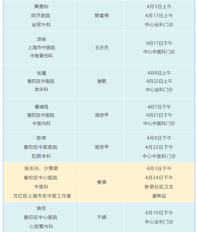 “家门口”就能看名医!普陀2025年4月专家门诊安排来啦 2025-04-09 来源:普陀区人民政府