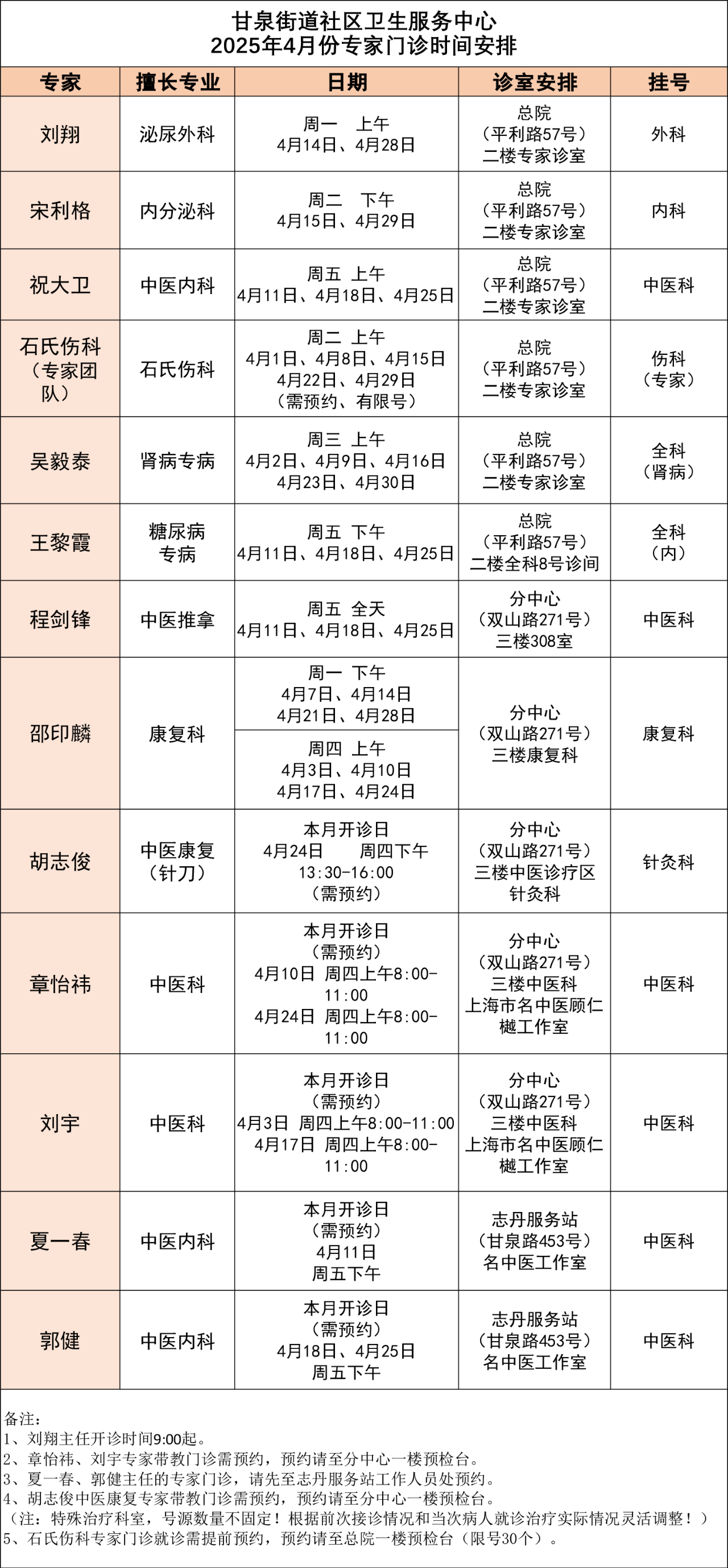 3、需提前预约的专家请至相关科室预约。