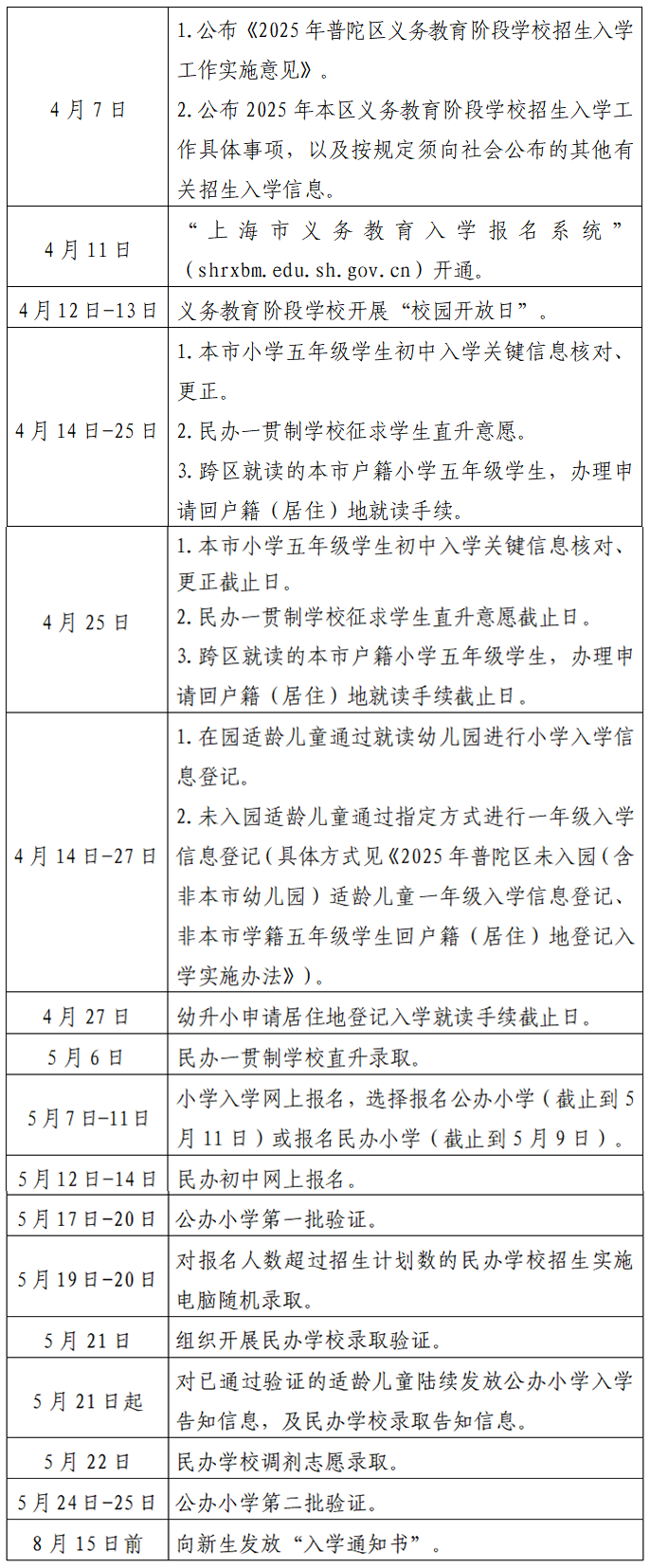 收藏!2025年普陀区义务教育阶段学校招生入学工作实施意见来啦 2025-04-11 来源:普陀区人民政府