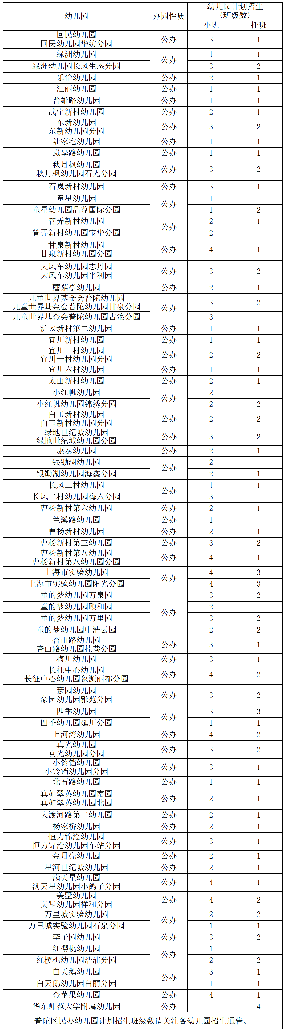 @适龄幼儿家长 2025年普陀区幼儿园计划招生班级数、公办幼儿园办学等级情况一览表快收藏