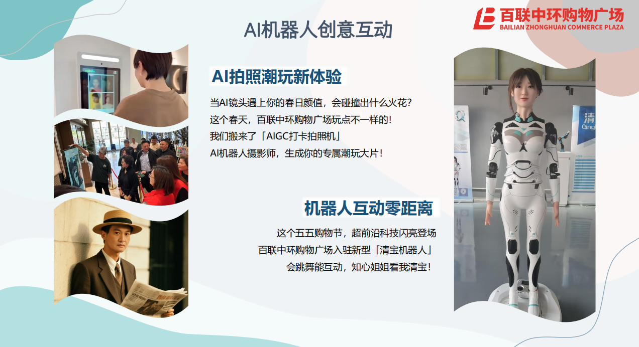 百联中环"智享未来·悦见生活"智慧科技生活节,期间将举行AI机器人创意互动,体验AI拍照潮玩新体验,七大新能源品牌集结,扫码急速试驾;开展“苏河写生”春季画展,结合绿植艺术布置与暖春文创集市,打造可游赏、可体验的文化消费空间;推出黄金珠宝春日特惠计划,黄金饰品类每克至高立减100元等折扣优惠,同时还有自然堂快闪店限时一日店长引爆现场。