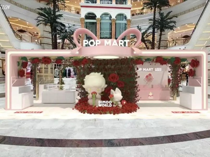 联动头部潮流IP品牌“泡泡玛特”举办快闪活动,陈列设计以“玫瑰蜜语”为灵感核心,将轻奢极简美学与玫瑰的浪漫叙事相融。