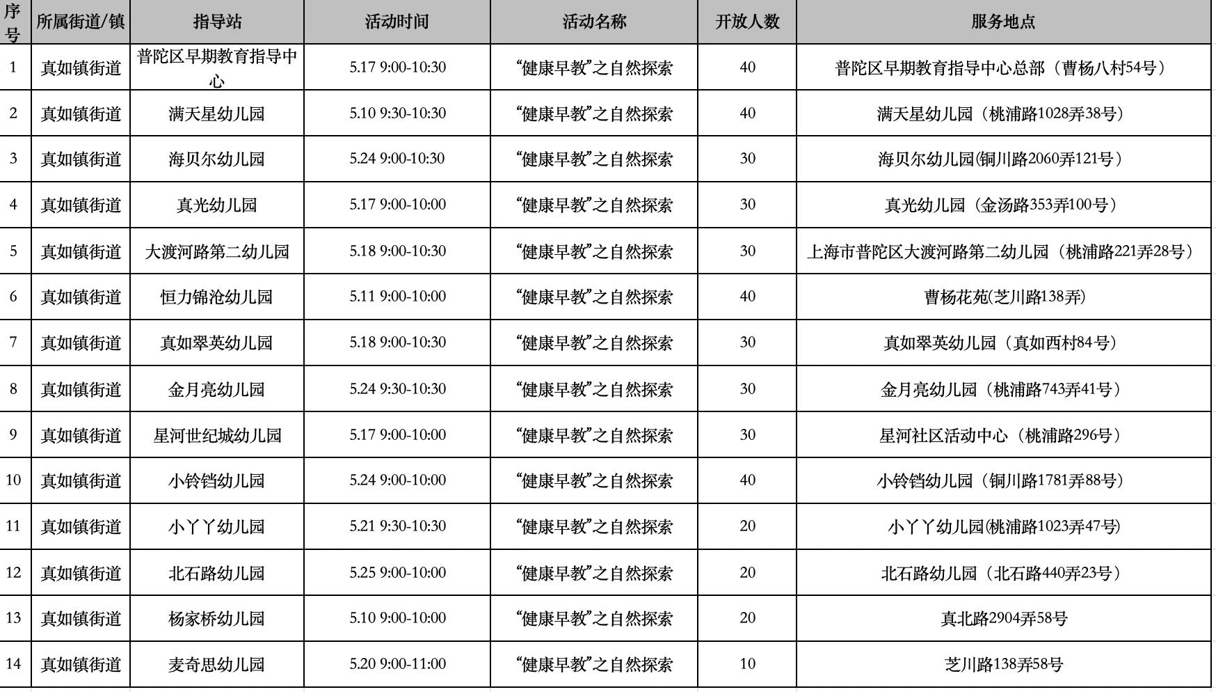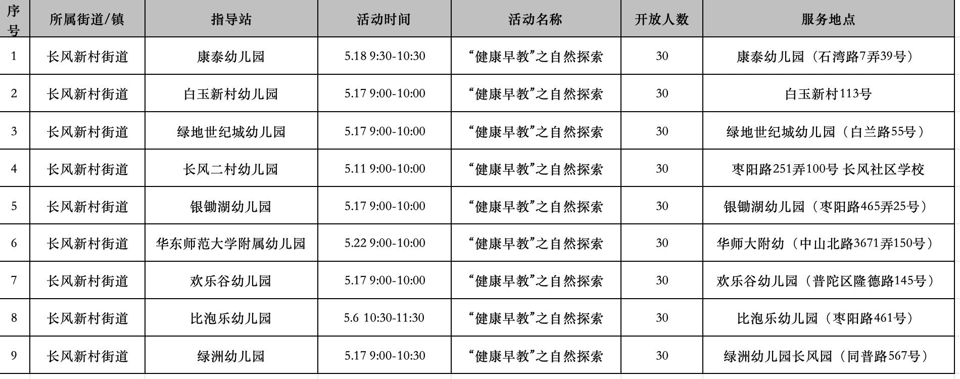 2025年5月起,普陀区科学育儿指导站将以“科学育儿——自然探索”为主题,在全区10个街镇的公(民)办幼儿园内开展亲子游戏活动,面向辖区内3岁以下婴幼儿家庭提供线下科学育儿指导免费公益服务。