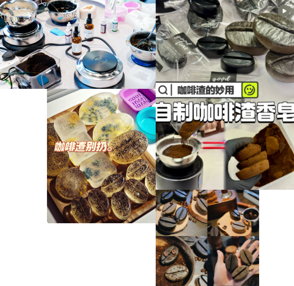 回收咖啡渣+天然皂基,亲手制作独一无二的香皂!在老师的带领下完成环保咖啡渣香皂手工课堂,即可将咖啡渣香皂带回家!