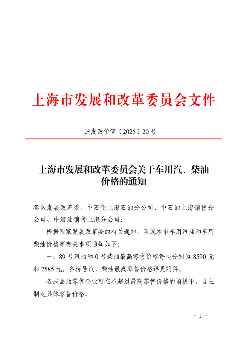 沪发改价管〔2025〕20号