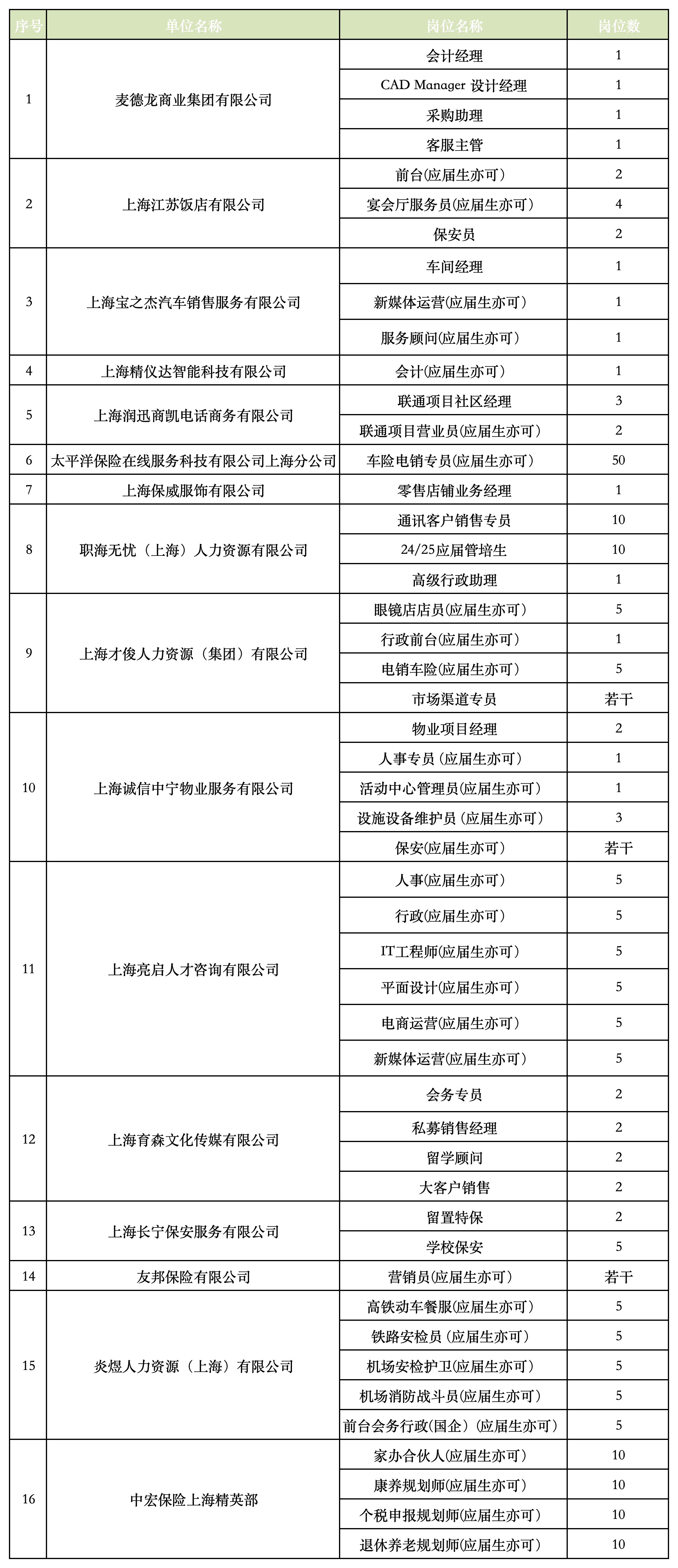 16家企业提供49个岗位(其中31个岗位可招应届生),招聘需求人数达240余人。