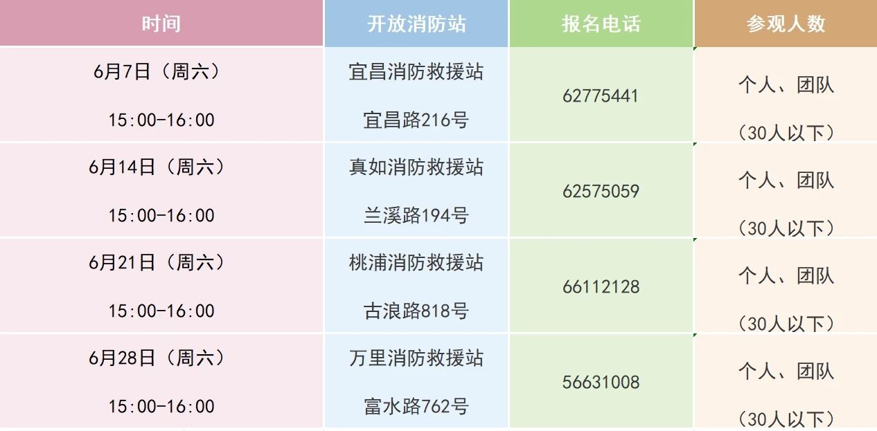 六月份消防站开放计划表