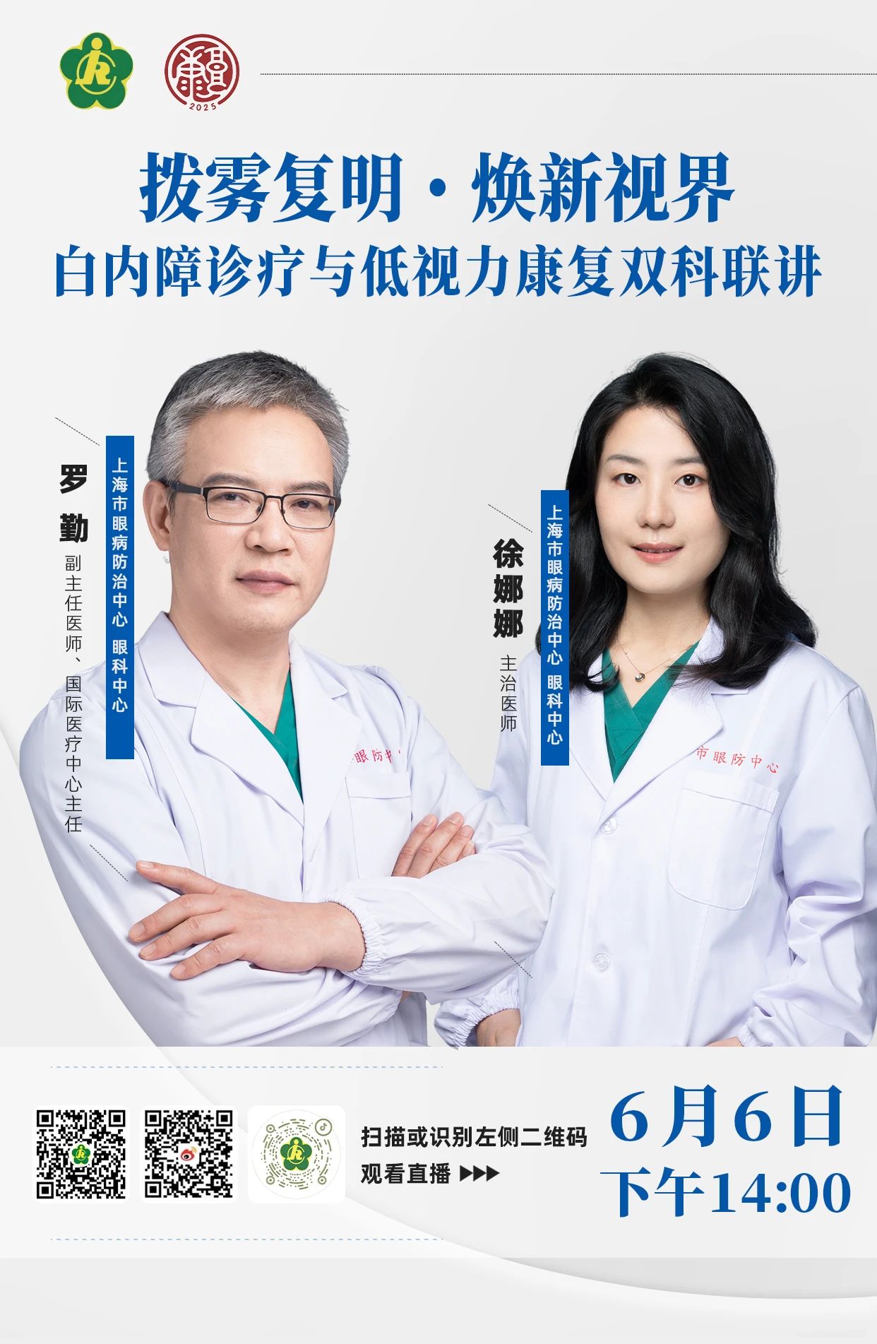 特邀上海市眼病防治中心眼科中心罗勤副主任医师及徐娜娜主治医师聚焦白内障与低视力康复,携手带来《拨雾复明・焕新视界:白内障诊疗与低视力康复双科联讲》特别直播。