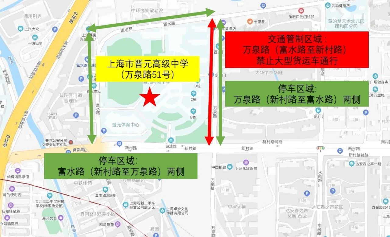 2025年高考普陀区考点周边交通管制区域及停车指南来啦! 2025-06-05 来源:普陀区人民政府
