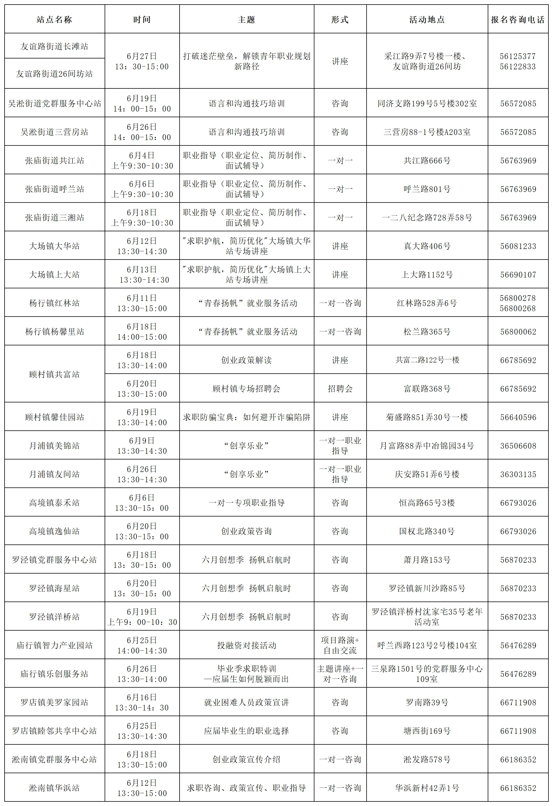 宝山区“15分钟就业服务圈”活动排片表