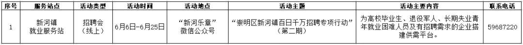 活动简介:提供岗位信息、求职登记、政策咨询等就业服务。
