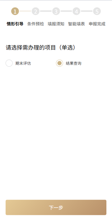 (一)选择“期末评估”,选择是否授权办理,意向登记街道