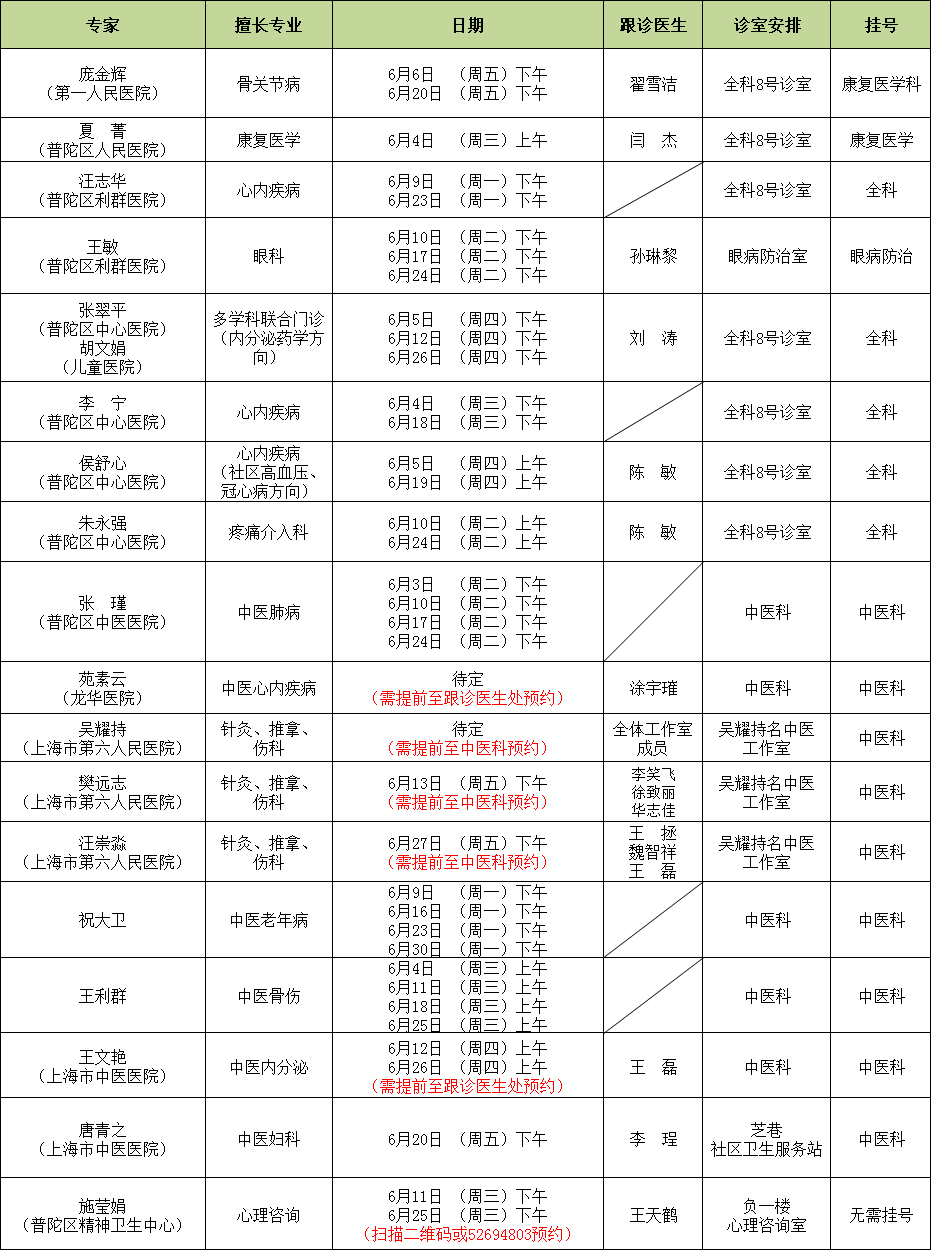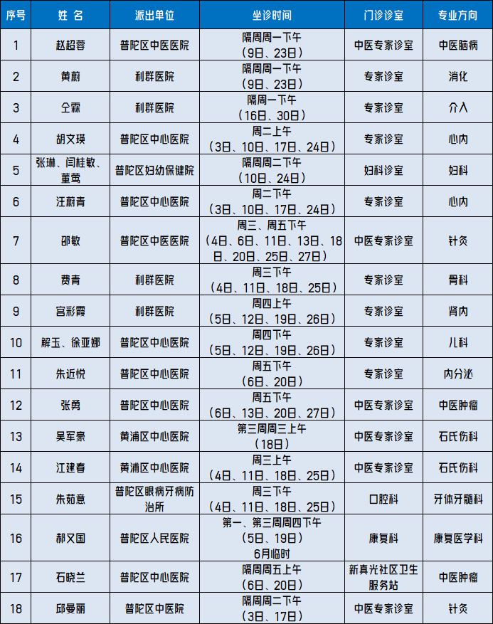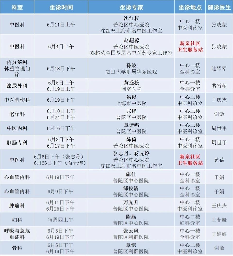 “家门口”就能看名医!普陀2025年6月专家门诊安排来啦 2025-06-06 来源:普陀区人民政府