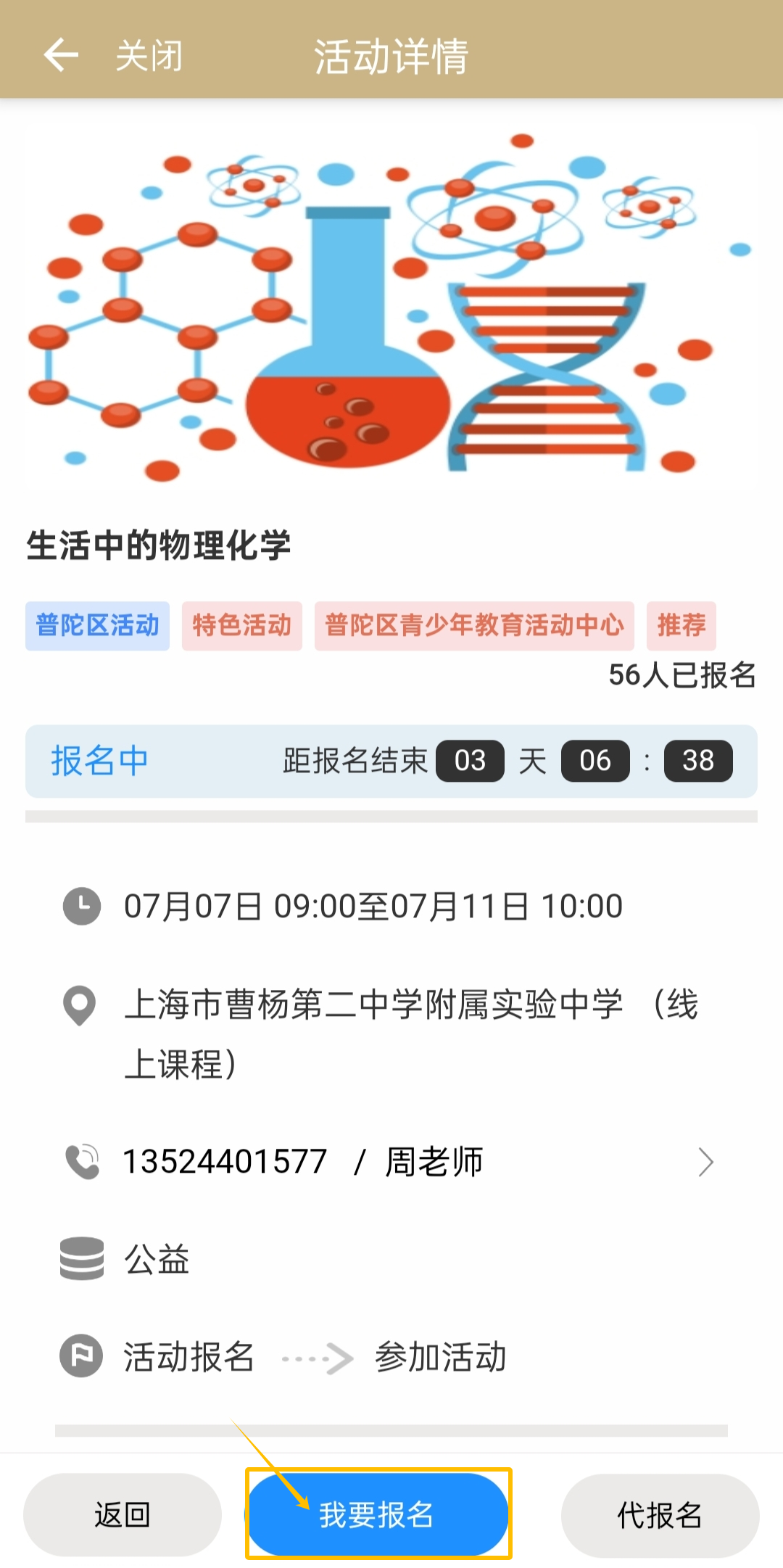 第三步:选择正在报名中的特色课程,进入课程详情界面,了解课程相关信息,点击页面底部的“我要报名”,输入并选择相关信息后点击“提交”即可完成报名,进入审核阶段,审核结果。
