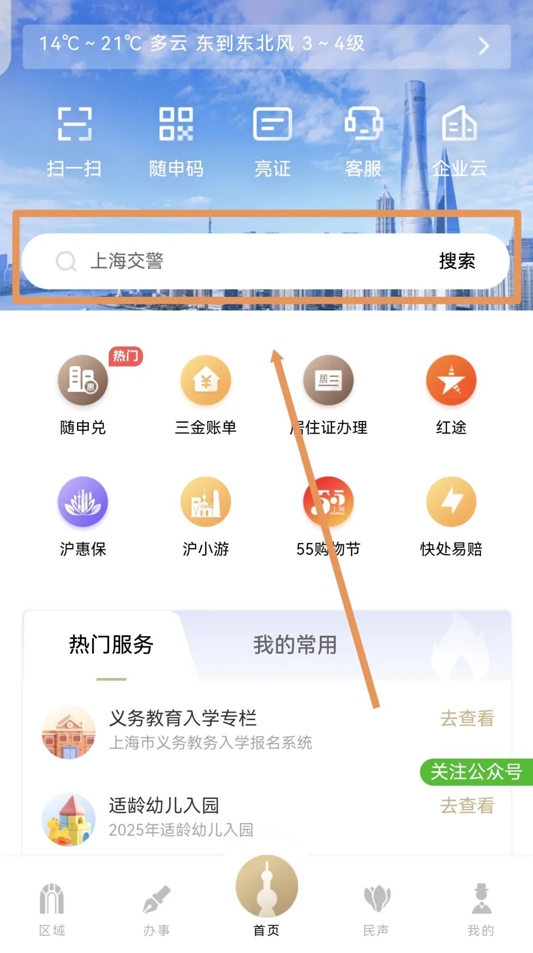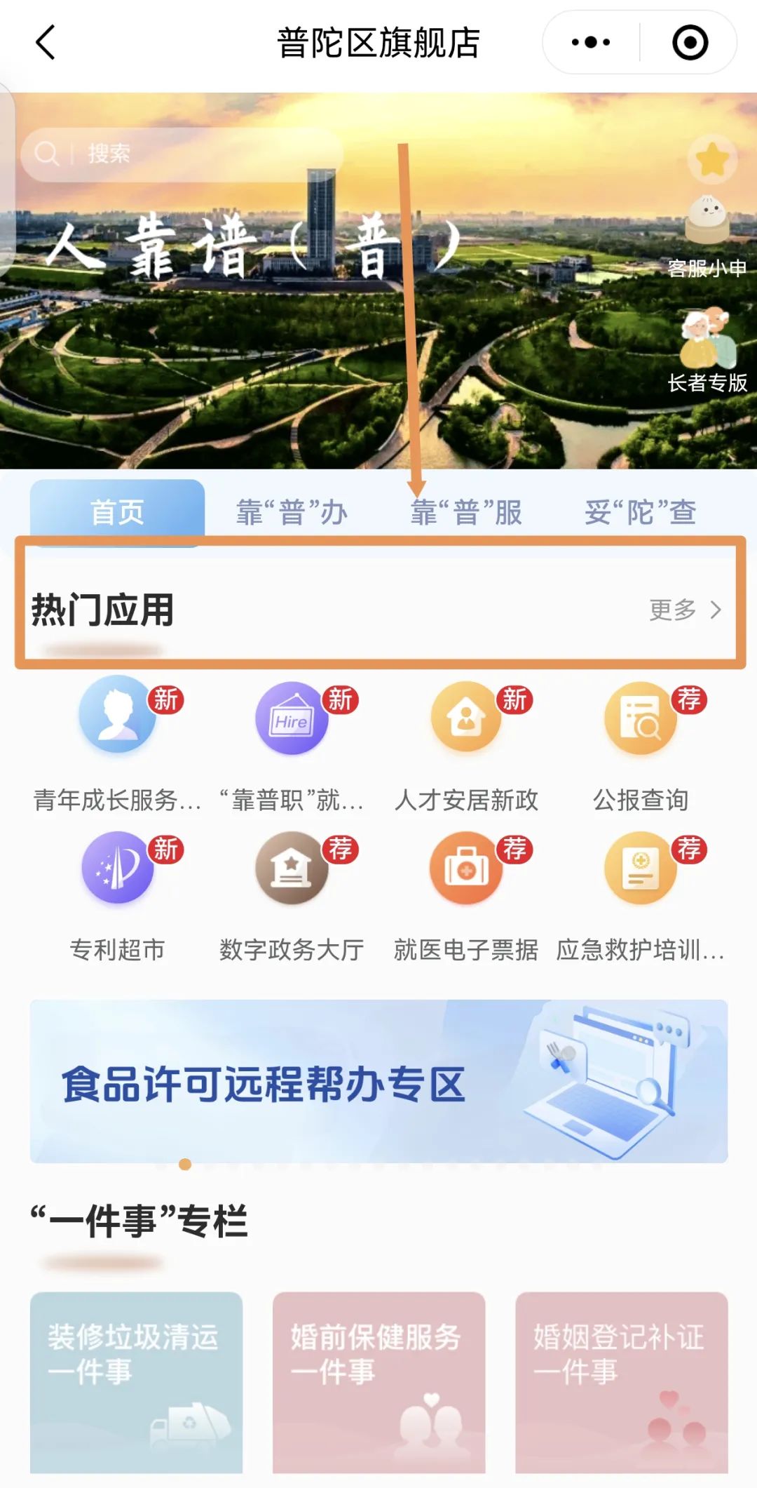 第一步:打开随申办市民云APP,在搜索栏中输入“普陀旗舰店”并进行搜索;
