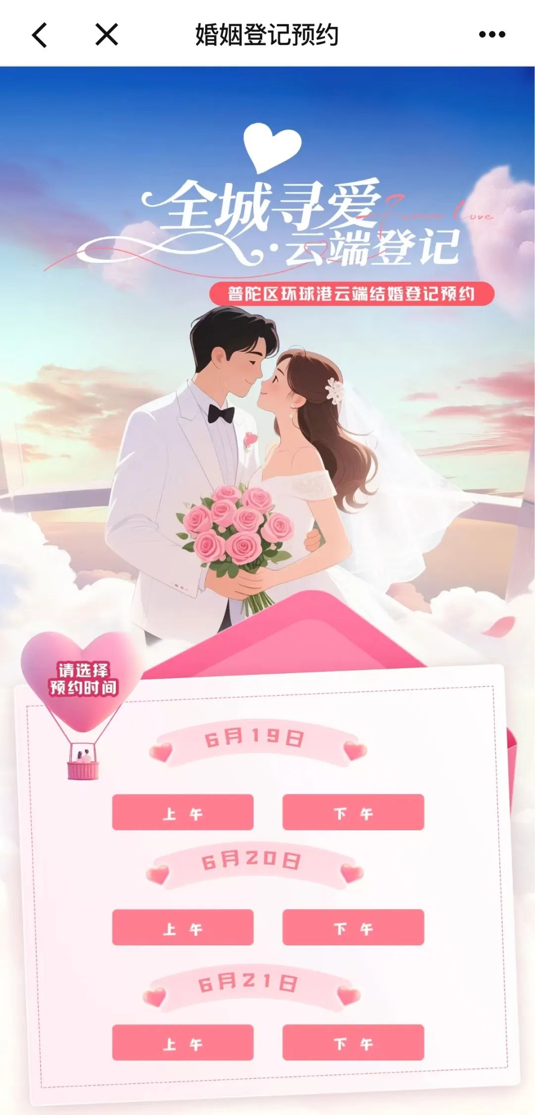 持续升温!6月云端甜蜜登记日已选定,“上海普陀”APP报名通道同步开启 2025-06-11 来源:普陀区人民政府