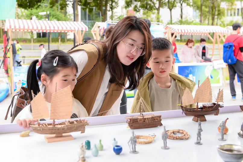 在苏州河畔,瓷刻、石雕、竹丝编、手绘彩蛋等非遗技艺齐聚长风大悦城,共谱苏河雅集,为市民编织出一幅流动的文化长卷。