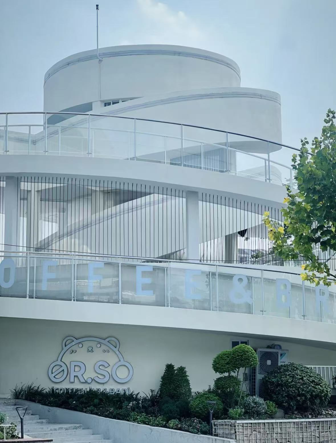 苏州河畔坐落着一栋奶白色螺旋型的三层建筑,这家颇为热门的咖啡馆同时也是苏河边的新泾湾驿站,成为河畔飘着咖啡香气的梦幻打卡地。