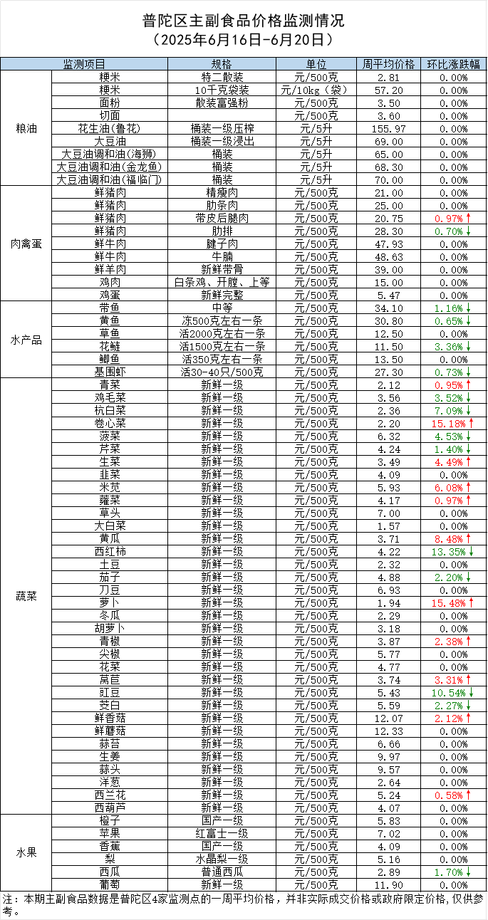 普陀区主副食品价格监测情况(2025年6月23日)