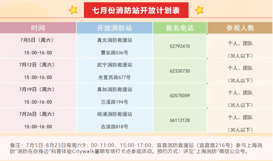 2、预约开放的消防站如有特殊情况,会视情况更换中队或者取消活动,届时会通知。