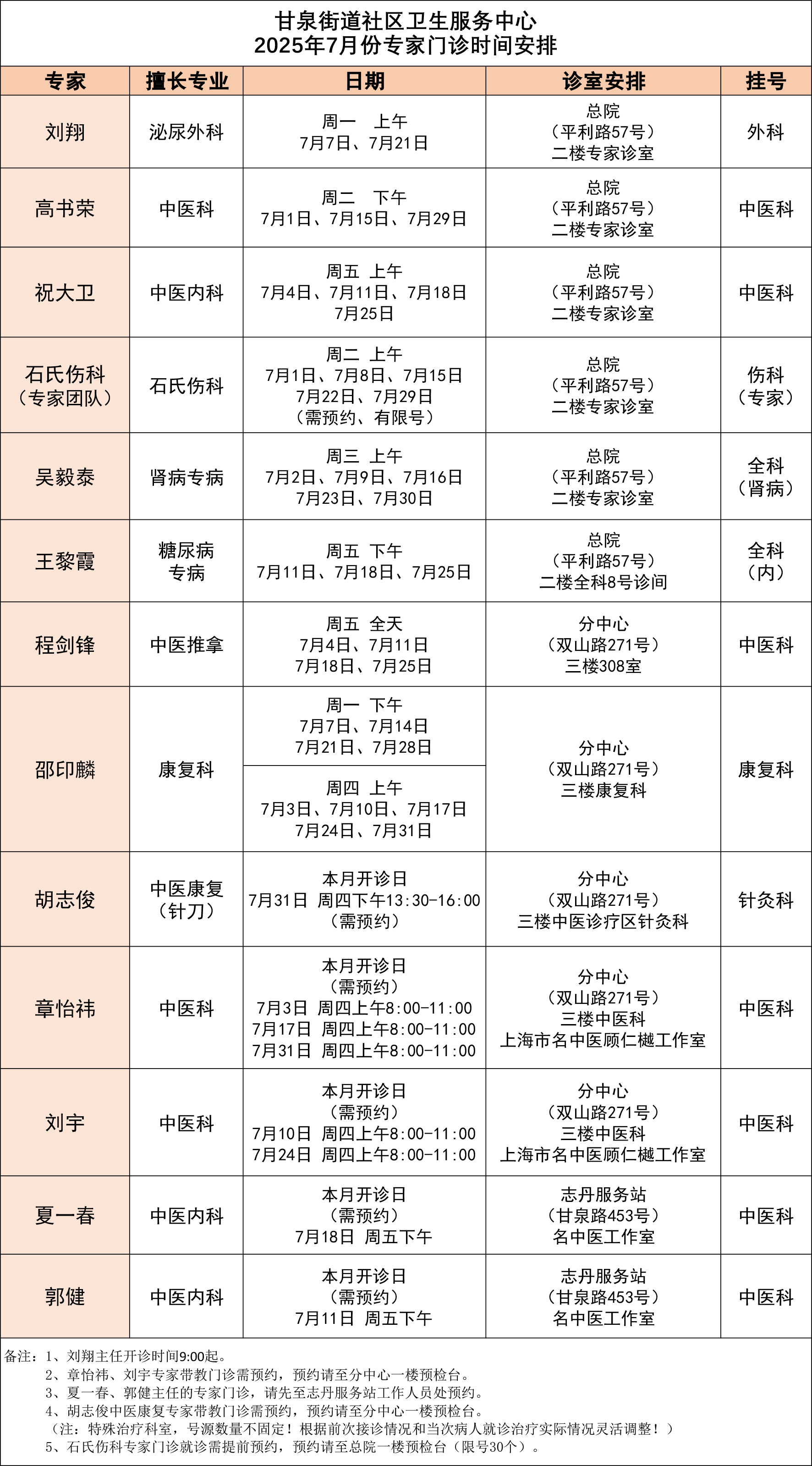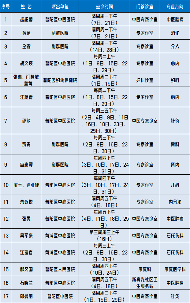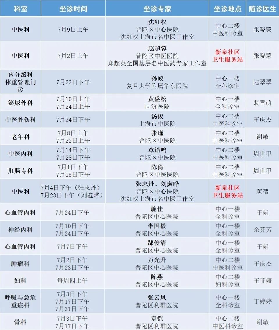 “家门口”就能看名医!普陀2025年7月专家门诊安排来啦 2025-07-04 来源:普陀区人民政府