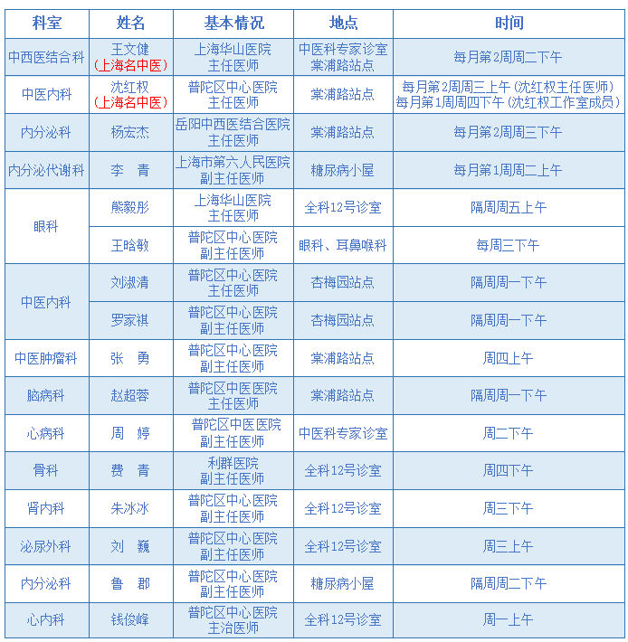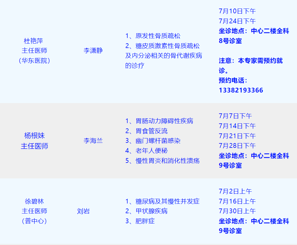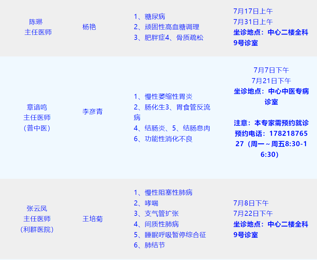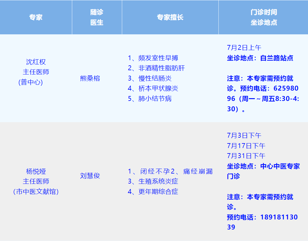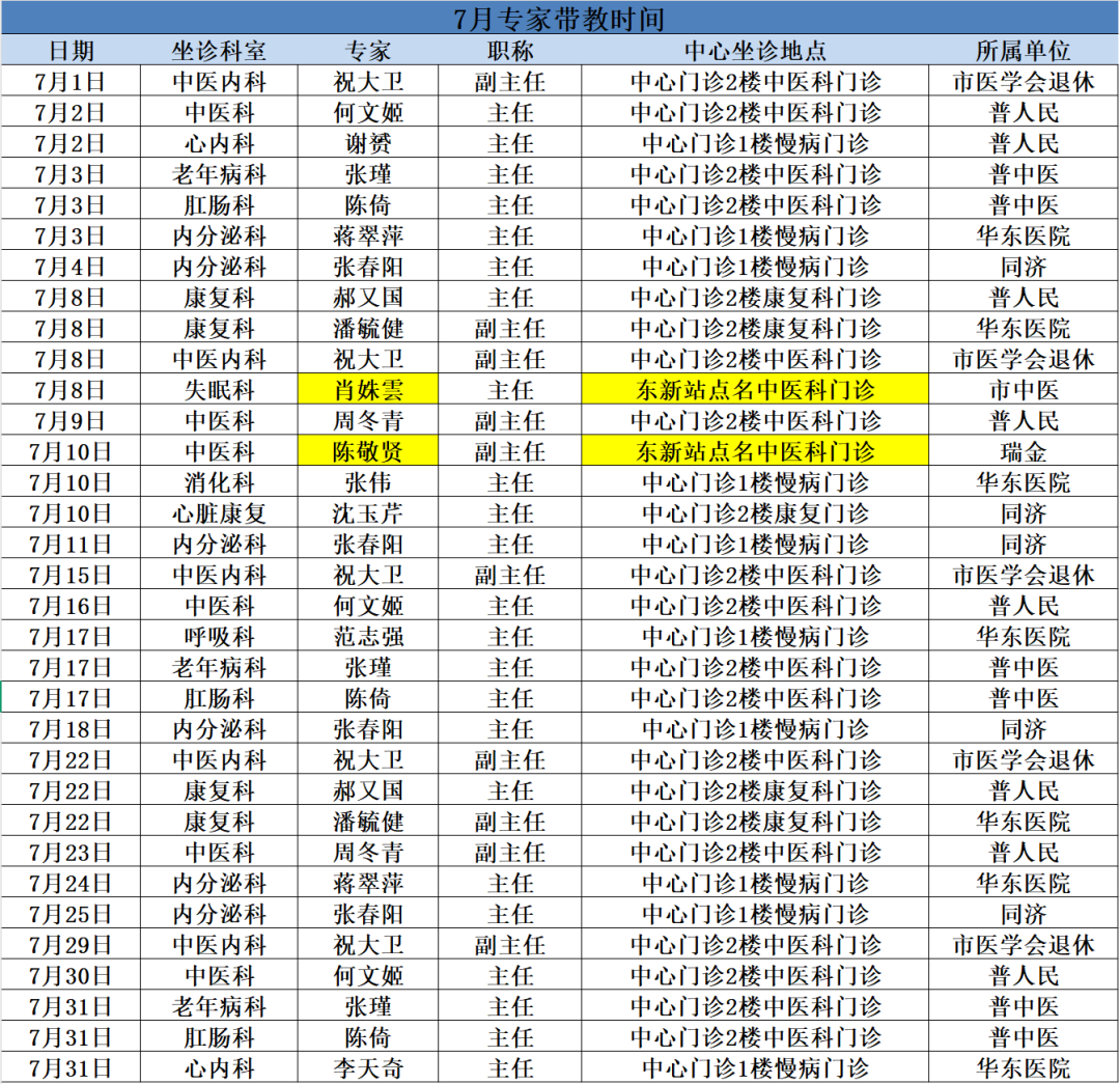 另:陈敬贤副主任每周二上午东新站点吴政医生处预约;失眠门诊每周二下午东新站点1楼名中医工作室预约,避免跑空!