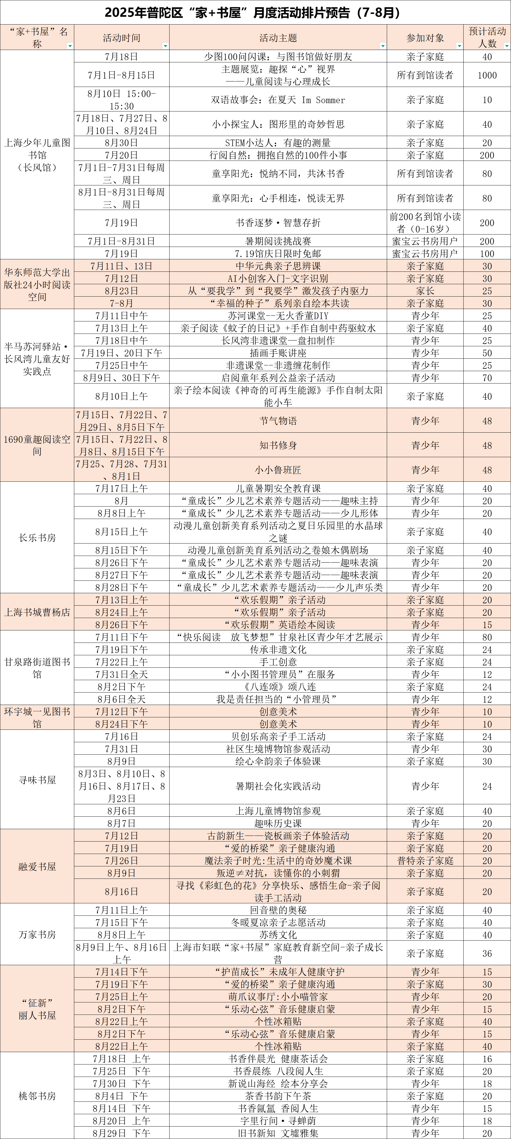 (活动具体时间、地点以各“家+书屋”发布信息为准)