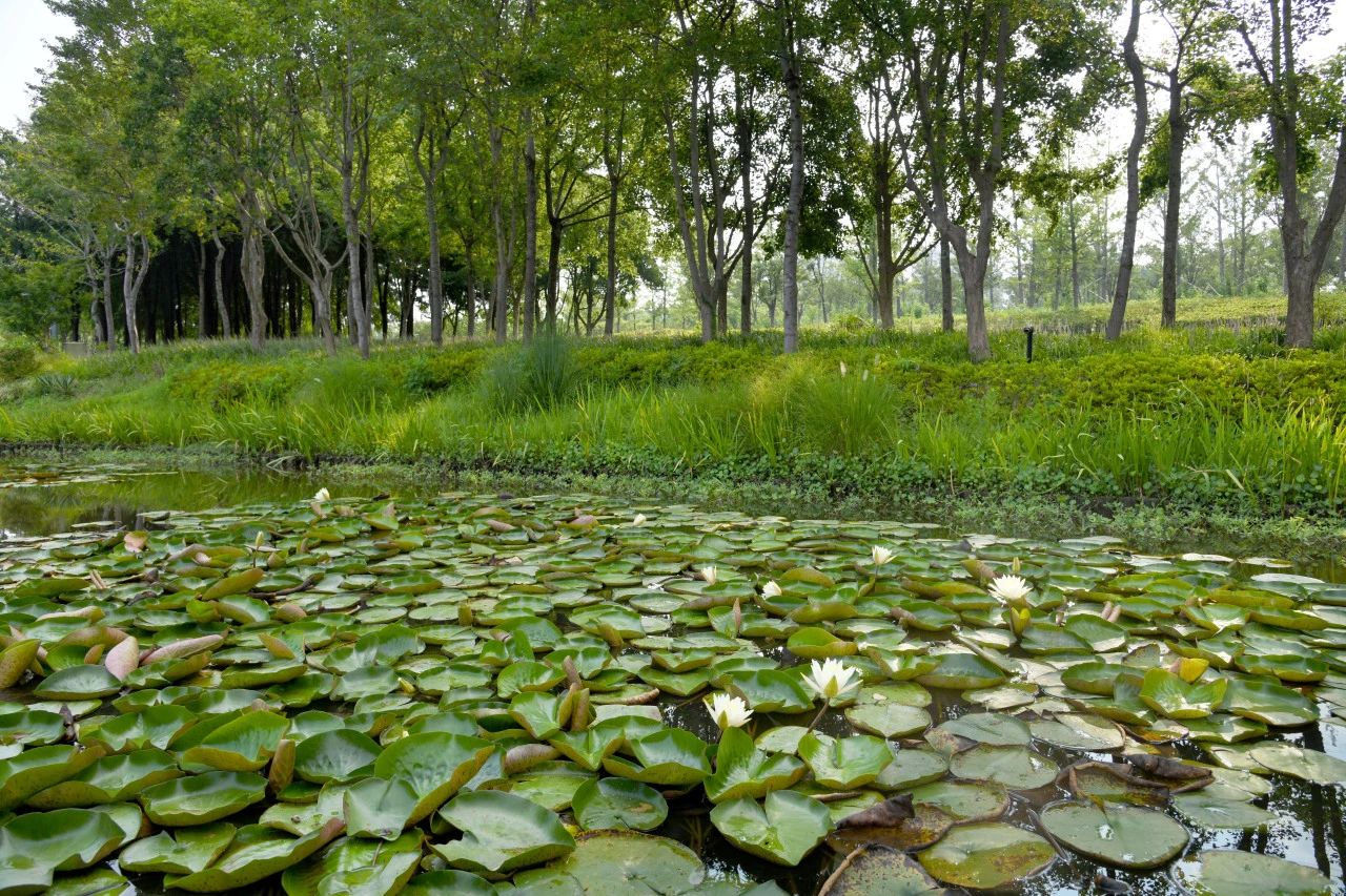 启动林公园的睡莲池独具特色,池水清澈见底,睡莲白色的根茎在水中舒展,清晰可见。岸边点缀的几株“夏花”,粉紫的花瓣偶尔飘落池中,与睡莲相映成趣,构成了一幅灵动的画面,随手一拍都如“莫奈花园”般唯美。