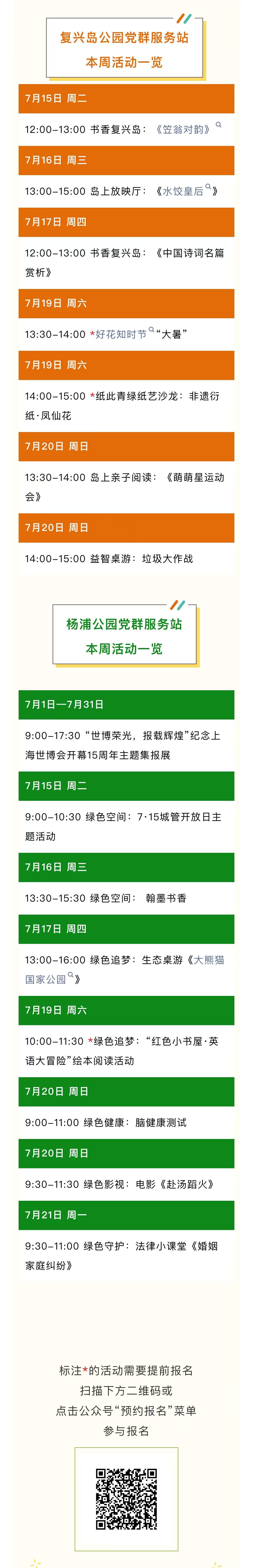 杨浦复兴岛公园党群服务站及杨浦公园党群服务站本周活动一览(2025.7.15-2025.7.21)