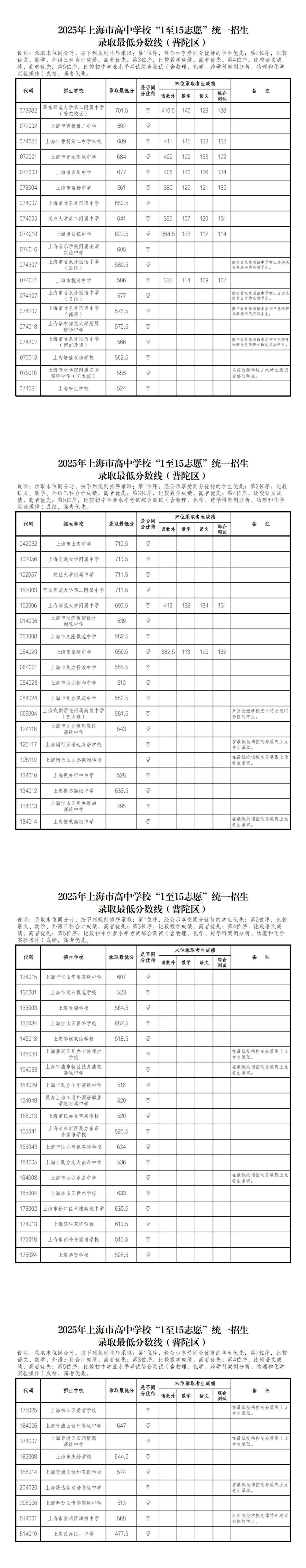 2025年普陀区高中学校“1至15志愿”统一招生录取最低分数线公布啦!快来一起看看吧!