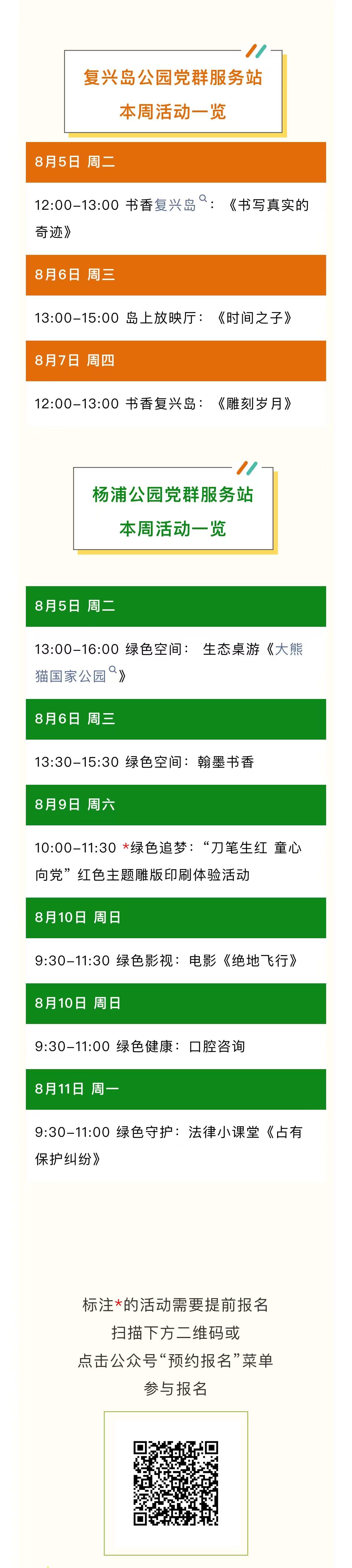 杨浦复兴岛公园党群服务站及杨浦公园党群服务站本周活动一览(2025.8.5-2025.8.11)