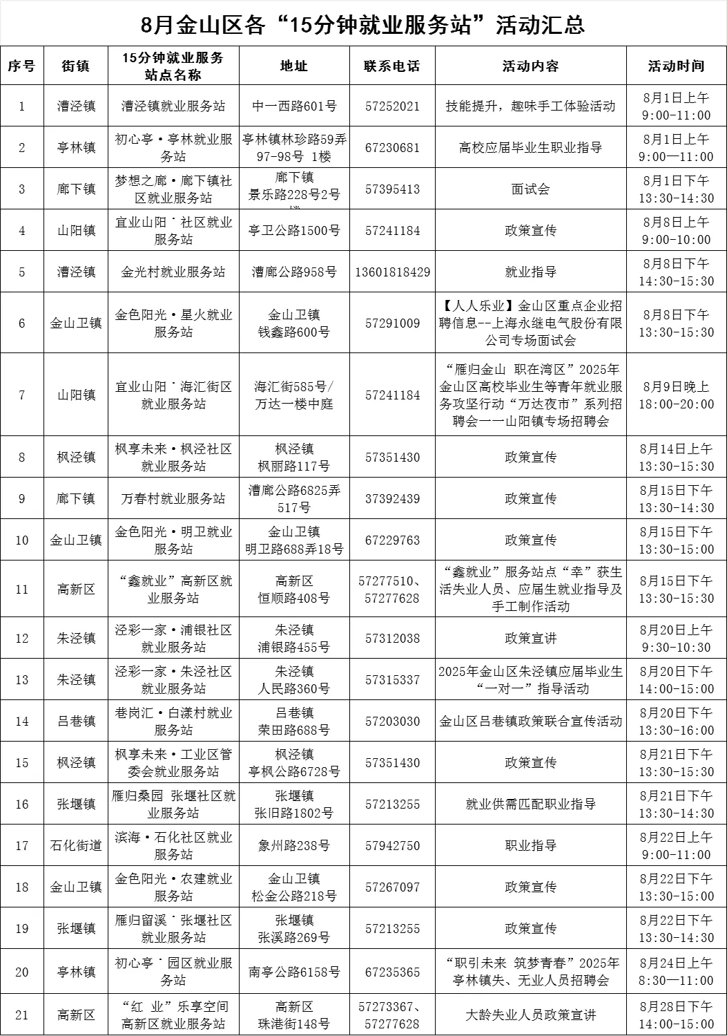 “15分钟就业服务圈”社区就业服务站点建设市政府实事项目作为人社部门常态化政府开放活动之一,我们将持续发布精彩服务内容,今天为大家带来黄浦区、长宁区、杨浦区、闵行区、宝山区、崇明区、嘉定区、金山区、松江区、青浦区、奉贤区近期就业活动安排!