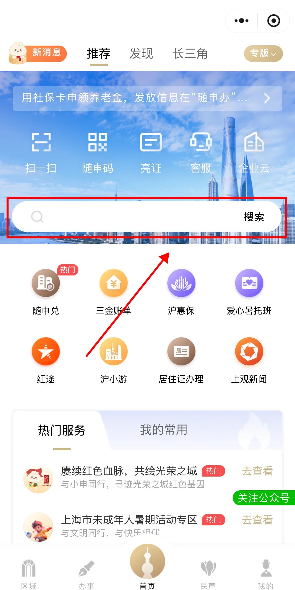 打开“随申办市民云”(APP/微信小程序/支付宝小程序),首页搜索栏输入“公园服务查询”,随后点击搜索即可!