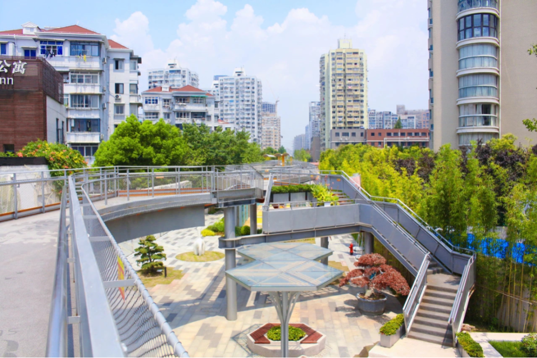 这条绿色探索之旅的终点站,是上海首座艺术高线公园——百禧公园。这座多层级复合型步行体验式社区公园绿地,在设计上充满生态巧思。1公里长的线性空间垂直延展为上、中、下三层“3K展廊”。“K1艺术展廊”半地下;地面“K2休闲活动廊”抬高1.4米,用作社区活动空间;架空“K3云上廊”离地3.8米视野瞬间开阔,步道宽阔不扰民。公园中还聚合多重场景,形成多维立体空间,以满足聚集、活动、娱乐、休闲、运动等公共服务需求。天气适宜时,居民在艺术长廊小憩,在绿意盎然的休闲长廊锻炼,下班、放学的人们则从云上廊穿行,尽览沿途景色,为整条CityWalk路线注入了现代艺术与生态再生交融的活力。