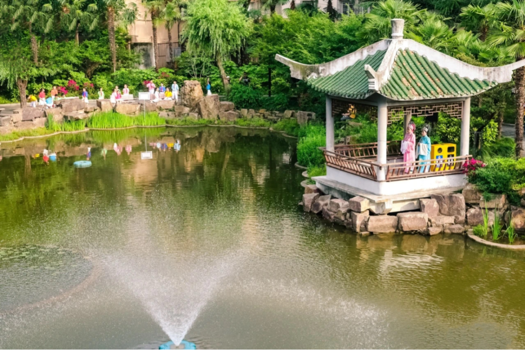 告别水韵清波,转入兰溪路,小巧精致的兰溪青年公园即刻映入眼帘。园内小桥横跨环浜,亭榭曲径巧妙穿插,隔景花坛灵动分隔空间。树木错落有致,随季节变换色调,春日嫩绿,秋日金黄,方寸之间蕴含生态意趣。而其没有围墙全开放式的设计,尤为受到居民喜爱,特别是满足了下班族和年轻人夜间休闲的需求。“有些公园关门太早,下班回家后想散个步、透透气,时间就来不及了。现在随时能来,晚上清静不热,感觉特别好。”周边居民肖璇道出了年轻人的想法。兰溪青年公园以一种“无界”的姿态,“嵌入”社区肌理,没有围墙的阻隔,与周围环境自然相融,让绿色生活与日常无缝衔接。