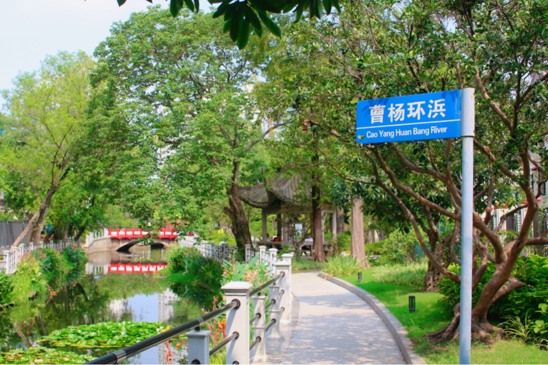 沿着郁郁葱葱的林荫步道,不久便抵达了水清岸绿的曹杨环浜。清澈的河水沿花溪路向南静静流淌至杨柳青路,再到杏山路,宛如一条贯穿曹杨新村的“绿色项链”。此情此景,让曾经历过环浜旧貌的居民感触良多。正在河边遛弯的王敏说:“改造前河水有异味,我都不敢走河边,现在环境这么好,我每天都要来走两圈,心里也舒坦。”