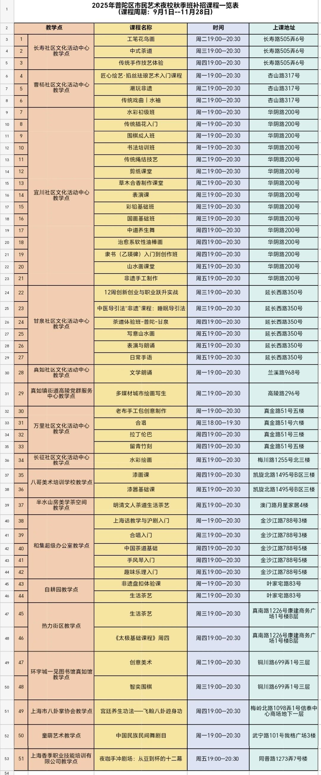 普陀区市民艺术夜校、市民日校秋季班报名多加2天! 2025-08-20 来源:普陀区人民政府